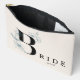 Minimalistic Ivory-Black Floral Caligraphy Bride Accessory Pouch. Beautiful ivory and black, taupe flowers with "Bride" in script and a floral intertwined around the "B". Edit with the date of your wedding as a keepsake you will cherish for a life time.