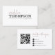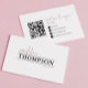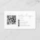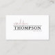 The design of this business card is clean, minimalistic, and professional. It features a white background with a combination of elegant cursive and bold serif fonts. The cursive text is positioned above the bold text, adding a soft and artistic touch. A horizontal line separates the main text, contributing to a balanced layout. The card uses a muted colour palette, including black and a mauve tone. The overall aesthetic emphasizes simplicity and sophistication.