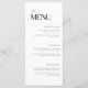 A modern and minimal black and white wedding menu card, designed with modern typography and script lettering. Personalise this item with all of your menu items.
