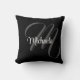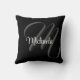Minimalistic modern monogram initial name black white. Personalizable custom name with a cursive initial behind on a black colour.