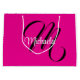 Minimalistic modern monogram initial name hot pink large gift bag