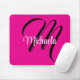 Minimalistic modern monogram initial name black white. Personalizable custom name with a cursive initial behind on a hot pink colour.