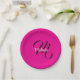 Minimalistic modern monogram initial name hot pink paper plate