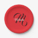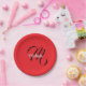 Minimalistic modern monogram initial name black white. Personalizable custom name with a cursive initial behind on a red colour.