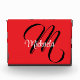 Minimalistic modern monogram initial name red photo block