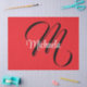 Minimalistic modern monogram initial name black white. Personalizable custom name with a cursive initial behind on a red colour.