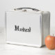 This is a standard metal lunchbox that appears to work just fine. We designed this box ourselves with an uploaded photo and custom text on the front and back. It looks absolutely beautiful except the front of the lunchbox is not centered like it shows in the photo. The print borders don't align with the inset flat part of the box where the preview photo online showed it perfectly centered in there. The back looks nice and centered though.