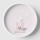 Minimalistic Monogram Initial & Name Pastel Pink Clock