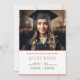Minimalistic one-photo graduation party invitation. Customisable text in grey and pink.