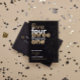 This New Year's Eve party invitation card features simple modern typography set against a black background with fireworks. The card design is fully customisable, with white and gold typography that can be personalised to suit your needs. It's the perfect way to send invitations for a New Year's Eve Party. five, four, three, two, one, gold and white typography.