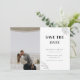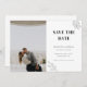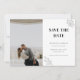 A simple and elegant wedding save the date card, designed with classic typography, florals, and a wedding photo on the left. Personalise with your future wedding details, engagement photo, and initials on the back.