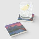 The coasters are gorgeous, a quality feel and heavy weight. They look like a precious archeological find. A rustic stone juxtaposed with a modern floral black and white print. I like the way the print goes slightly imperfect on the cut stone edges giving them a kind-of natural beauty.