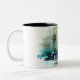 A coffee mug with a graphic design of a Minnesota map, lighthouse, loon, and Lift Bridge.
