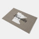 Modern farmhouse personalised doormat with your family name inside your state map. Faux burlap canvas texture background. Click Customise It to add your own text and images and create a unique one of a kind design!