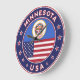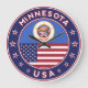 Badge of Minnesota with flag of Minnesota and flag of USA colours, rounded shape.