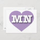 This postcard features a lavender heart containing the bold, white, upper case letters MN, the official abbreviation for Minnesota, the north star state. The reverse side of the postcard is blank, awaiting your personalised text or handwritten sentiments.