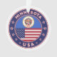 Badge of Minnesota with flag of Minnesota and flag of USA colours, rounded shape.
