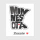 Typographical art with the state of Minnesota. The state name letters are whimsically curved, stretched, squeezed, and slanted to the shape of the state outline, and rendered in brush strokes. A small red heart says you love it.