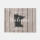 Proud of your home state and want to show it off in a rustic looking customised and personalised wood look background doormat. It has "Welcome" in a white script across the state shape which is in black. Personalise with your home city and name.