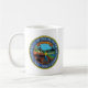 The seal of the great state of Minnesota! Étoile du Nord means Star of the North. Here is how the symbolism is explained: The sun, visible on the western horizon, signifies the flat plains covering much of Minnesota. The Indian on horseback is riding due south and represents the Indian heritage of Minnesota. The Indian’s horse and spear and pioneer’s axe, rifle, and plough represent tools that were used for hunting and labour. The stump symbolises the importance of the lumber industry in Minnesota. The Mississippi River and St. Anthony Falls are depicted to note the importance of these resources in transportation and industry. The cultivated ground and the plough symbolise the importance of agriculture in Minnesota. Beyond the falls, three pine trees represent the state tree and the three great pine regions of Minnesota–St. Croix, Mississippi, and Lake Superior. The seal of the great state of Minnesota is presented on dark blue so it resembles the state flag on all our cards.