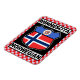 A design in the style of a classic US road-sign, combining the flags of Norway and Minnesota in a shield.
