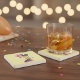 The coasters are gorgeous, a quality feel and heavy weight. They look like a precious archeological find. A rustic stone juxtaposed with a modern floral black and white print. I like the way the print goes slightly imperfect on the cut stone edges giving them a kind-of natural beauty.