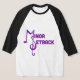 Black and white baseball tee with purple logo