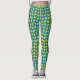 Ladies Leggings design in a pattern of yellow triangles with blue squares randomly laid out against a green base colour.