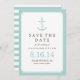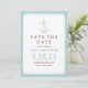 Stylish save the date announcements perfect for a summer or tropical destination wedding feature a beautiful illustration of an anchor and an elegant nautical stripes pattern on the back. Visit our store for more colour options and matching products.