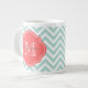 Mint and Coral Chevron Custom Monogram Large Coffee Mug