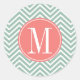 Mint and Coral Chevrons with Custom Monogram Classic Round Sticker