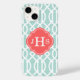 Mint and Coral Modern Trellis Custom Monogram Case-Mate iPhone Case
