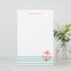 Mint and Coral Nautical Stripes Cute Anchor Stationery