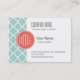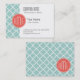 Mint and Coral Quatrefoil with Custom Monogram Business Card