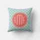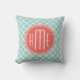 Mint and Coral Quatrefoil with Custom Monogram Cushion