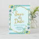 Mint and Faux Gold Floral Save the Date Card