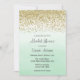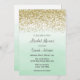 Bridal shower invitation with gold glitter look design and ombre mint green watercolor background.
