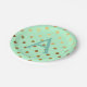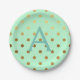 Mint and Gold Foil Polka Dots Monogram Birthday Paper Plate