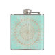 Elegant, stylish bohemian mandala, trendy tribal flower, shining, faux golden foil texture, white watercolor small brush strokes paint on a mint background. Dots, stripes, triangles, geometric shapes. Mandala floral, mystical, dreamy, henna, spring, summer bright colours. Feminine, girly, elegant, chic, trendy, simple, fashion, artistic, art, artwork