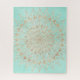 Elegant, stylish bohemian mandala, trendy tribal flower, shining, faux golden foil texture, white watercolor small brush strokes paint on a mint background. Dots, stripes, triangles, geometric shapes. Mandala floral, mystical, dreamy, henna, spring, summer bright colours. Feminine, girly, elegant, chic, trendy, simple, fashion, artistic, art, artwork