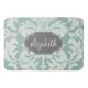 Mint and Grey Damask Pattern Custom Name Bath Mat