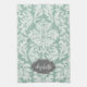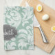 Mint and Grey Damask Pattern Custom Name Tea Towel