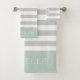 Mint and Grey Stripes Monogram | Editable Colours Bath Towel Set