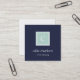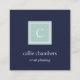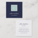 Modern yet classic navy blue business card design features a square element in pastel mint green holding your single initial monogram, with your name and title or business name beneath in lowercase serif lettering. Personalise the reverse side with your contact details in matching navy. A contemporary choice for any occupation; sample shown for event planners.