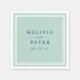 A perfect match for mint and navy color schemes, our summery, coastal-chic wedding cocktail napkins feature a pale seaglass green background with a white border and your names and wedding date in elegant marine navy blue lettering. Coordinates with our Seaglass Tides wedding collection.