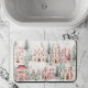 Mint and Pink Cosy Watercolor Winter Scene Bath Mat
