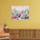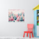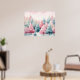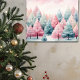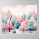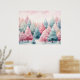 A mint and pink watercolor Winter scene with a beautiful fir trees forest!