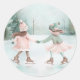 Mint and Pink Girls Skating - Winter Scene Classic Round Sticker