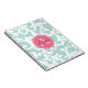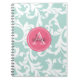 Mint and Pink Monogrammed Damask Print Notebook