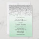 Bridal shower invitation with silver glitter look design and ombre mint green watercolor background.